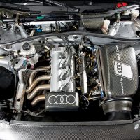 The rebuild was on the original Matter-built shell taken back to bare metal, with every part refreshed and many original Audi Motorsport components retained, including the correct ECU, the major components being rebuilt by Karl Hasenbichler (of Audi Sport) in Germany.