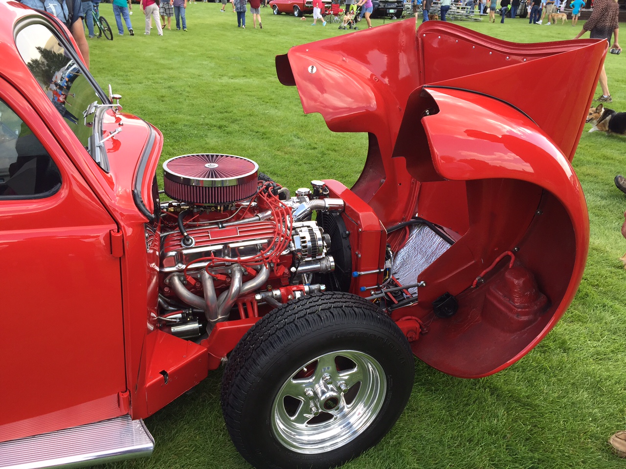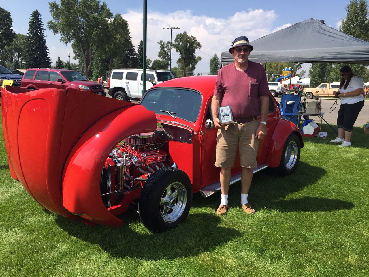 Saturday was the show. I noted with interest that there were five Saturn Skys and Pontiac Solstices. When Best of Show was announced, it wasn’t an Isotta Fraschini. Instead, the award went to an immaculately presented 1967 Volkswagen Beetle that had been fitted with a front-mounted V8 and used as a drag racer. The Bug is owned by Gary Thompson of Montrose, CO.