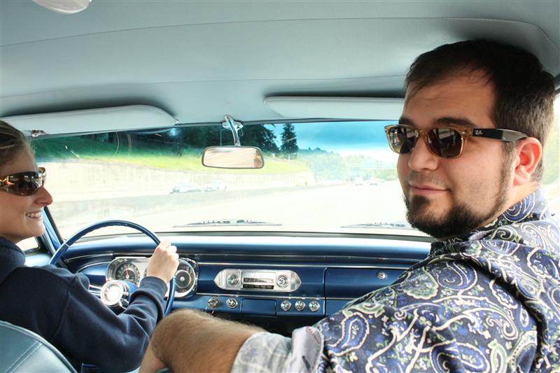 I rode out to lunch in the Nova, which was no eye-opener for me. I own and work on old American iron, so the Nova is a known quantity — it wanders down the highway but has plenty of power, has lots of room inside, and there’s a good amount of wind noise from reproduction weatherstripping that’s close to but not quite the right size. I actually jetted and tuned the carb in that car about a year ago, and it still feels dead-on. It’ll always start and won’t ever break down — unless you leave the lights on or run it out of gas.