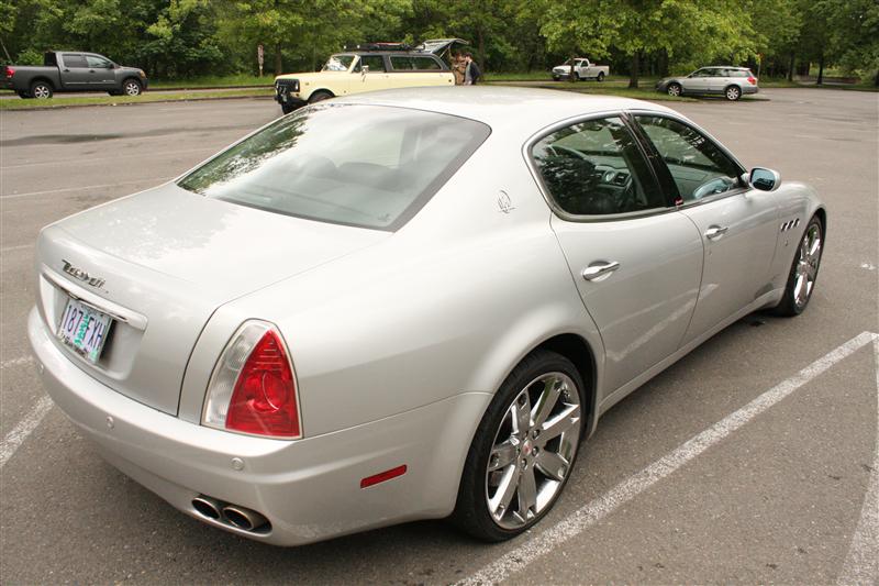 We made the winding drive out to the Sandy River, stopping for nourishment and hydration at the Tippy Canoe. After lunch, the uneventful drive took a most surprising turn when the Maserati caught a flat tire. How poignant that the car had to be towed home was the newest of the bunch!
