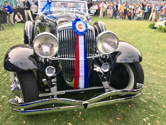 The Best of Show Concours d’Elegance went to an imposing and sinister black 1935 Duesenberg Model SJ-582 with a LaGrande torpedo phaeton body by Walker, owned by Terrence Adderley of Bloomfield Hills, MI.
