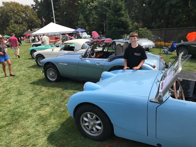 The field of 200 or so cars was a potpourri of makes, models and years. There was an impressive turnout of Austin-Healeys. Bradley got a chance to compare the Bugeyes on display with his car. He decided he liked his painted wire wheels better than the spoked wheels on some Bugeyes.