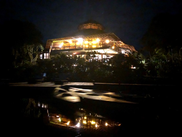 And now, half a century later I am at the Galapagos. As a precursor, Bradley and I spent three days at La Selva, reached only after a three-hour boat ride. We’ve looked at the reflections of our flashlights in the eyes of caimans — a relative of the alligator — lurking in the lake in front of the lodge.