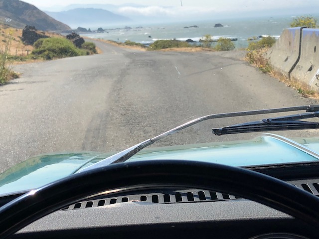 We roared down through the rocky coasts of Oregon, watching the squalls from windows or windshields, seeing the smoke from wildfires come on the horizon, seeing the tourists in modern cars braking suddenly for whatever they wanted to brake for.