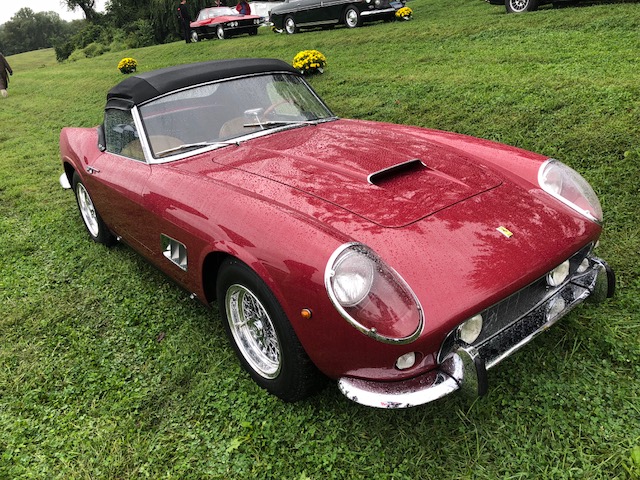 Of the 101 cars registered, 41 braved the rain, including the SWB covered headlight 1962 Ferrari California Spyder that belonged to Oscar Davis — which had just been shown at Pebble Beach. I appreciated him bringing out the car for us to admire, without fear of a little moisture or mud.