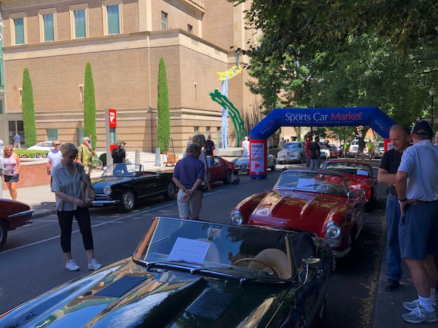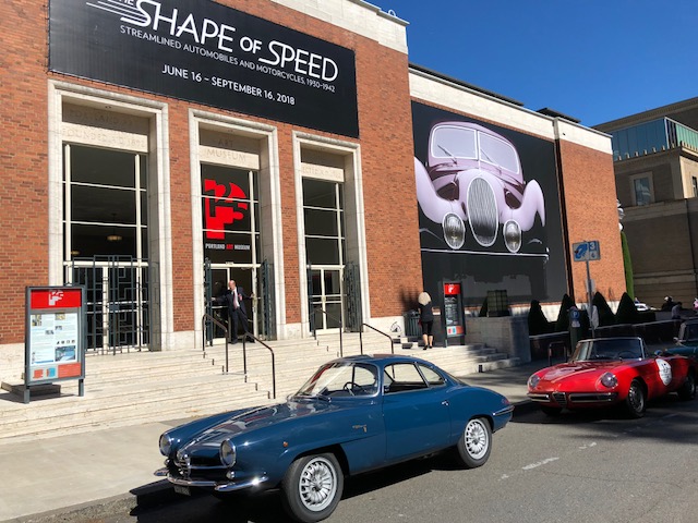 The Tour started on Sunday afternoon, when the drivers brought their cars to a public display outside of the Portland Art Museum. The display was part of the museum’s “The Shape of Speed: Streamlined Automobiles and Motorcycles: 1930-1942” exhibit. The exhibit will continue through September 15. The Portland Art Museum is the presenting sponsor of the SCM 30th Anniversary Tour.