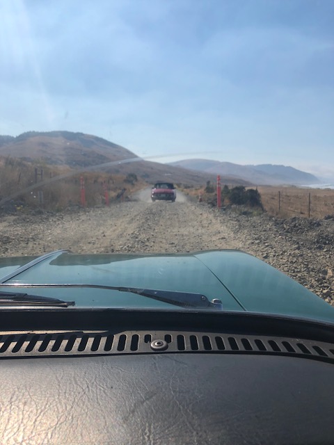 The road held more surprises. We ran up and down through various ranges. We found the water, a sweeping with views of the Pacific Ocean, windy as a good day in Kansas, with no one but ourselves and the fat, happy cows to enjoy it. We took pictures, we laughed, and we dodged some more potholes. It was sublime, the best car experience I probably have ever had in my short time on this Earth, and it kept going.