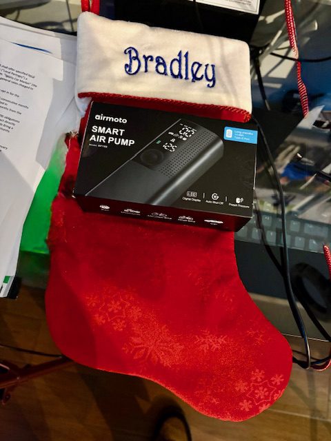 In addition to the miniature stuffed ferret, the travel-sized toothbrush and toothpaste, and a bag of pistachios, there was a box. It contained a portable tire inflator.