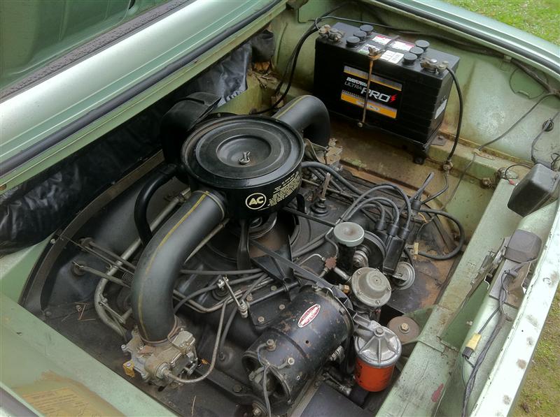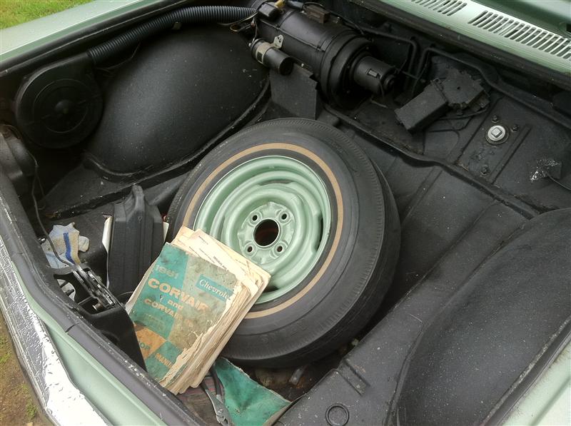 The Corvair was exactly as described — EXCEPT—it wore a cheapie respray from years ago, the seats had Wal-Mart covers (poorly installed), and all exterior chrome strips were missing, as well as the chrome around the front and rear glass. Oh, and the engine had a tappet knock, and a vintage, pungent smell emanated from the car’s rear end, due to oil dripping onto the exhaust manifold.