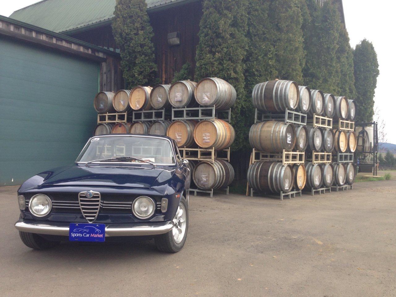 John drove his 1957 Giulietta Spider Normale that he bought on eBay some years back — a tastefully and correctly restored car upgraded with a splitcase 5-speed and a two-barrel downdraft Weber (in place of the pathetic, progressive OEM Solex). I mentioned that a 1959 Normale, not nearly as nice as John’s, had sold for an astounding $140,000 at Gooding’s Amelia Island auction. Carlyn’s immediate reaction was, “Doesn’t the buyer need two of them?”