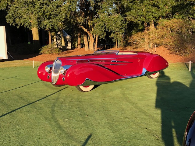 Saturday morning I was the moderator for an SCM Insider’s Seminar. The panelists were Ken Gross, Mark Hyman and Peter Mullin. Our topic was Delahaye, Duesenberg, Alfa and Porsche. We discussed the historical importance of each marque, as well as the affordable classic and best buy choices for each. Peter Mullin, chair of the board of directors of the Petersen Museum, was awarded the “Prince of Palmettos” trophy (decided by audience votes).