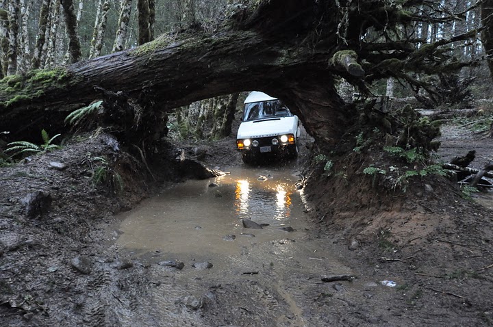 We spent the weekend smashing and bashing our poor pampered Range Rover, cruising up Cedar Tree trail in the Tillamook State Forest. Chubb iPad app developer Michael Cottam was my copilot, and our two three-year-olds, Benjamin and Bradley, were the back seat drivers. Aside from bending the rock sliders on both sides and putting a tasty dent in the right rear corner of the Rangy, the only other damage was to my ego as everyone else seemed to go faster, with ease, than I could manage.