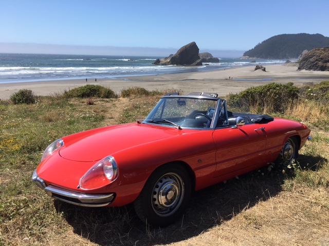 My Duetto will be entered in the “50th Anniversary of the Duetto” judging — I’m a sure bet for the “Red Duetto With ’67 Alfa Oregon Plates that was driven down Highway 1 to Concorso” award. I always try to find a way to win something.