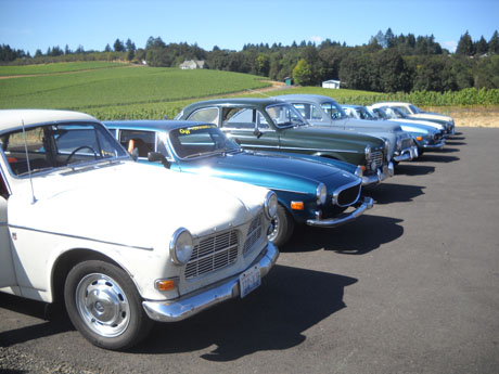 SCM sponsored the first annual Round Fender Volvo Wine Tour in Oregon’s Willamette Valley. There were nine cars in all, including a P1800ES with a nitrous tank! Wineries visited included Methven (where we scored some 2005 Reserve Pinot Noir), Domaine Serene and Adelsheim. There was only one mechanical casualty, when the right-hand-drive 123 GT failed to proceed up a hill to do fuel starvation problems. We pointed the car downhill and everything was fine.