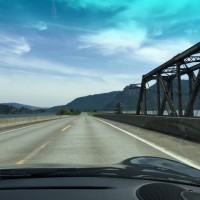 We started out eastbound on Interstate 84, then crossed the Columbia River at the Bridge of the Gods. We picked up Washington State Route 14 at that point — a picturesque winding road snugged up against the basalt volcanic pillars that frame the Gorge.