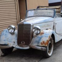 This 1938 Mercedes-Benz 170V Cab A has been owed by the same gentleman since 1968 and has been sitting for the last 40 years in a barn waiting patiently to be restored. White with black interior . A very rare and sought after car and an excellent original example