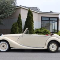 The 1950 Jaguar Mark V 3.5 Litre Drophead Coupe has always represented the combination of Jaguar elegance and classic pre-war styling. This particularly rare left-hand drive example is the ideal restoration candidate. Ivory with red interior. A straight car with an excellent body. It comes very complete and is sold overall. The Jaguar Mark V debuted in 1948 at the London Motor Show, and it retained a stylistic link to the beloved pre-war SS cars with its classic William Lyons curves, but it was otherwise nearly all new. One could say that the drophead coupe was the XK120 for the sportsman who had a family. When it comes to traditional British motoring, no car better combines style and comfort than the Jaguar Mark V. This LHD 3.5 Litre Mark V is an exciting project for any collector or marque enthusiast.