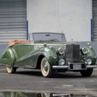 This stunning 1952 Rolls-Royce Silver Dawn Drophead Coupe is a factory Left hand drive example wearing a beautiful older restoration. Subtle two-tone green paint with tan leather interior. This Park Ward Drophead Coupe, design number 322, is one of only six made. The swooping, front fenders blend seamlessly into the tapered rear with spats covering the rear wheels. Mechanically strong, it runs and drives wonderfully and the power top operates as it should.