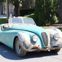 This 1953 Jaguar XK120 Roadster is an original black plate California car with matching numbers that’s been patiently awaiting complete restoration. Green with black interior. It’s not currently running as it’s been off the road for many years. The front fenders have had some bodywork done in fiberglass at one point in the car’s life. This ever-desirable and collectible XK120 Roadster is not to be missed. Offered at an absolute bargain price, be the first to restore this classic Jaguar!