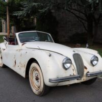 This highly collectible 1954 Jaguar XK120 Drop-Head Coupe is an excellent original matching numbers example that’s ideal for straightforward restoration. White with red interior. A very desirable find, this XK120 DHC has been sitting for several years in storage and is just out of long-term ownership. These cars are becoming harder and harder to come across in restorable condition, making this one an exciting opportunity for any lover of iconic British sports cars. This classic XK120 DHC is offered at an absolute bargain price and is not to be missed!