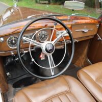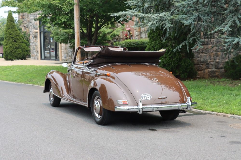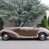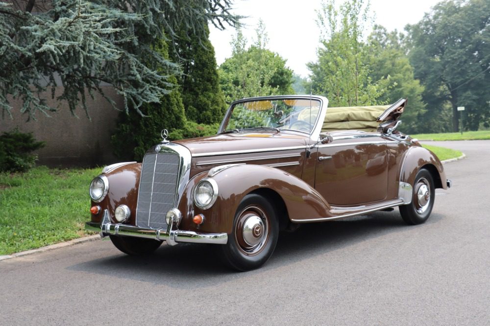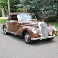 This charming 1954 Mercedes-Benz 220 Cabriolet A is an extremely collectible and desirable car wearing a quality older restoration. One of Approximately 300 equipped with a curved windshield. During 1953 the manufacturer replaced the conventionally flat windscreen on the “Cabriolet A” with a slightly curved screen, this was a way of highlighting the sporting nature of the model. Brown with brown leather interior. Offered with history documenting ownership, maintenance, and the restoration process. A binder of documentation totalling over $41,000 and photographs from the 5 year restoration accompany the car. Recent work includes rebuilding the carburetor, adding fresh fluids, installing a new battery, and new brake shoes. It has clearly always been well maintained and garage kept. This elegant Mercedes-Benz runs and drives well and presents beautifully with good paint, brightwork, and clean interior. A very straight car with good panel and door fit as well as a solid and clean undercarriage. An excellent driver quality example ready for weekend touring.