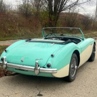 This 1956 Austin Healey 100-4 BN2 is a very honest and presentable driver. Sought-after BN2 model with 4-speed gearbox and overdrive. Florida green with white coves and black interior. A highly original and solid car that’s never been fully restored. It runs and drives well but occasionally pops out of first gear. Don’t miss the opportunity to own this classic and iconic British sports car. An extremely collectible and desirable BN2 100-4. A superb buy for any Austin Healey enthusiast.