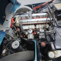 left hand drive configuration making this example one of the rarest of all derivatives of post-WWII Aston Martins. Offered with a copy of its build sheet which states it originally left the factory in Ice Blue over Peacock Blue with blue/grey leather interior. Over the course of the last 16 years, its 1990s restoration has aged somewhat. Mechanically sound, it runs and drives but should be serviced prior to extensive use. With some tidying of its cosmetics, it would make a great tour car, which is sure to stand out in any crowd of Aston enthusiasts.