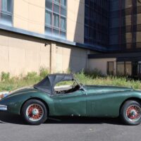 This 1957 Jaguar XK140 Roadster is a highly sought-after MC model with matching numbers. Green with black interior. An extremely original black-plate California car in need of straightforward restoration. Just out of a collection where it has been sitting in storage and is not currently running. This car has never been restored so here’s your chance to be the first to do so.
