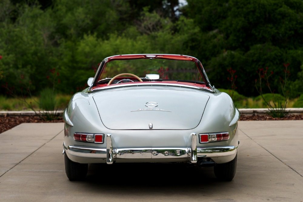 This W198 Mercedes-Benz 300SL Roadster is 1 of just 27 examples delivered new with Rudge ‘knock-off’ wheels while retaining its factory applied original DB 180 Silbergrau Metallic paint and 1079 Rot leather. This 300SL retains all of its original ‘numbers matching’ components and retains all five of its original, date-coded 300SL Roadster-specific Rudge wheels along with its original Hepco luggage suitcases. Having never before been exhibited on a concours showfield in the United States, this exceptional W198 Roadster checks all of the boxes of a preservation show winner with unusual rarity throughout and is mechanically a star, fully sorted for long distance touring use.