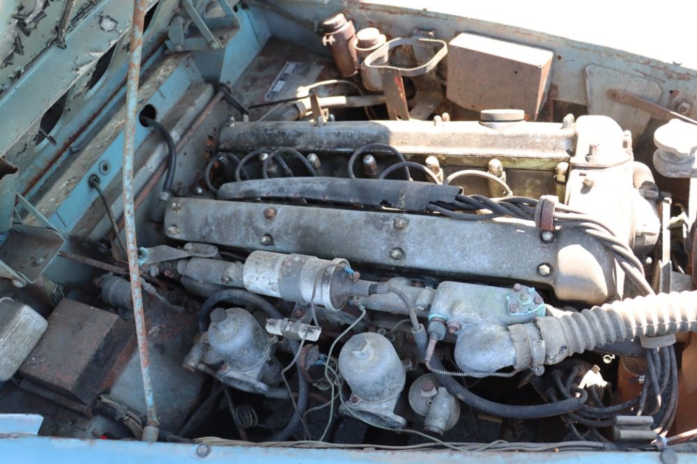 This desirable 1958 Jaguar XK150S Roadster is a highly original example that’s been off the road since 1978. Blue with red interior. The head is matching numbers but the block has been replaced at some point in the cars life. A solid, straight, and honest car for simple restoration. Not currently running. At some point the interior was redone in Vinyl. An exciting opportunity to own an unrestored XK150 Roadster and an excellent value.
