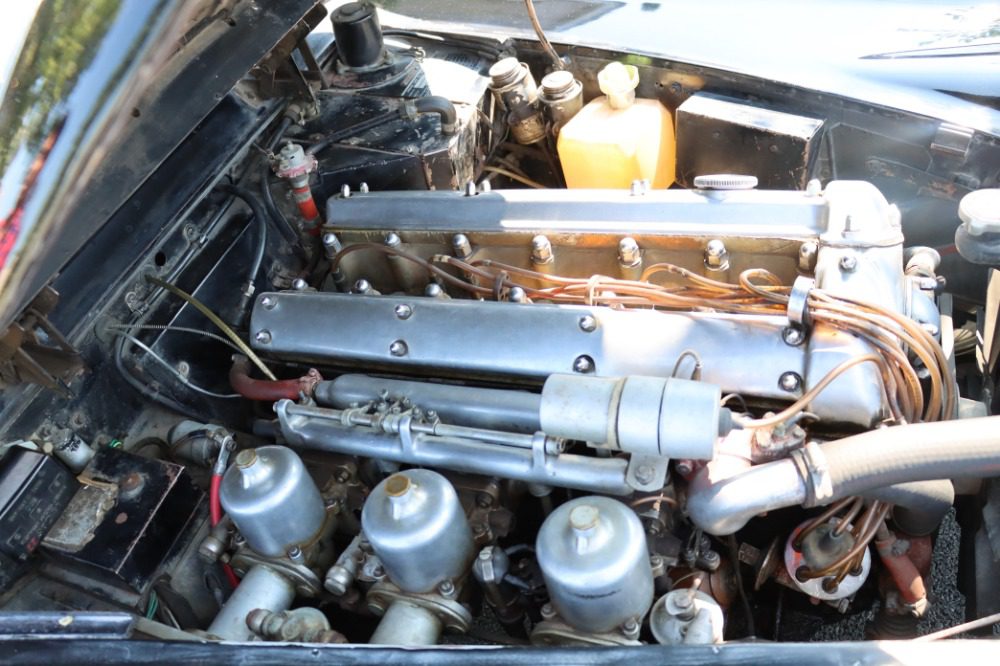 This rare 1959 Jaguar XK150 S 3.4 Litre Drophead Coupe is a remarkable survivor that retains its original matching numbers engine and has been under the same ownership since 1966. Throughout this incredible 57-year ownership, the Jaguar was treated as a member of the family and diligently maintained. While used regularly for a number of years, including a trip to the East Coast, written notes on file show that in 1988 its odometer read 56,200 miles, just shy of the 56,411 the odometer currently shows. The Jaguar shows a patina from its careful use and retains many original finishes, including the vast majority of its original paint. Offered with its Heritage Certificate and tool kit. After years of static storage, it will require mechanical attention prior to road use. The S model benefits from a revised cylinder head and three 2″ SU carburetors to produce 250hp, a full 60 hp more than the standard car, and 40 hp more than the mid-range 3.4 SE. According to its Jaguar Daimler Heritage Trust Certificate on file, this DHC was built on January 26, 1959, and shipped to distributor Jaguar Cars in New York finished in black with a black top and black leather interior. With just two owners from new and single ownership since 1966, this unrestored matching numbers XK150 S DHC represents a rare and exciting opportunity for any Jaguar enthusiast or collector alike.