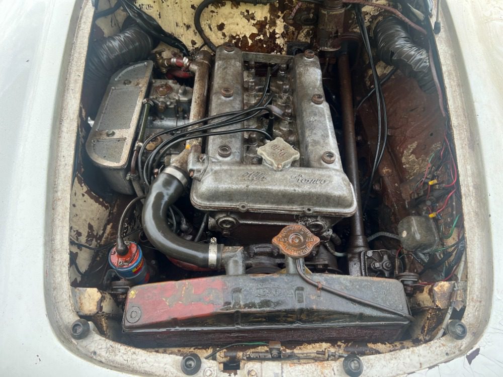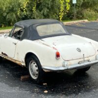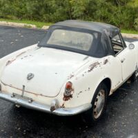 This 1961 Alfa Romeo Giulietta Spider is a very exciting discovery and a highly original example that’s been patiently awaiting complete restoration. White with black interior. The car has been sitting off the road for decades and is not currently running. It comes complete and has never been restored. It does have plenty of rust but this classic Alfa is a very rare find that’s well worth the effort to restore. A quintessential Italian sports-car penned by Pininfarina. This project is not to be overlooked by any enthusiast of the marque.