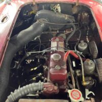This 1961 MGA 1600 is a highly original car that’s never been restored. Ready for a straightforward cosmetic recommissioning. Burgundy with black interior. Runs and drives. Out of 60 year ownership, the previous owner purchased the car in 1965. It has always been stored inside. The engine and gearbox have been overhauled. A new soft-top and side curtains (still in the box) are included. The older repaint is showing its age and requires attention. A good old car with a lot of potential. It wouldn’t take much to bring this car up to a presentable driver quality level. Clad in a stylish aerodynamic body and capable of topping 100 mph in ‘1600’ form. These quintessential British sports cars offer ample driving pleasure on the open road and make great entries into local rallies and club events. An exciting opportunity for the British sports car enthusiast.