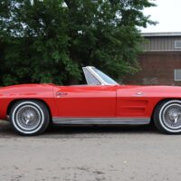 This 1963 Chevrolet Corvette Convertible 327/360 Fuelie with 4-Speed manual gearbox is an absolutely gorgeous matching numbers example that’s been fully restored. One of only 2,610 built in 1963. The L84 option rewarded its owners with a 327 equipped with a solid-lifter valvetrain, special Duntov camshaft, and mechanical fuel injection. Red with red interior and black soft-top. A superb driver that starts right up and runs strong. Being a subject of a complete restoration, it’s exceptionally clean inside and out with an immaculate undercarriage as well. Nice paint, chrome, and interior as well as beautiful soft-top fabric. An extremely collectible and highly sought-after C2 Corvette that’s ready to be driven and enjoyed. This rare and desirable Corvette is one that any collector would be proud to own.