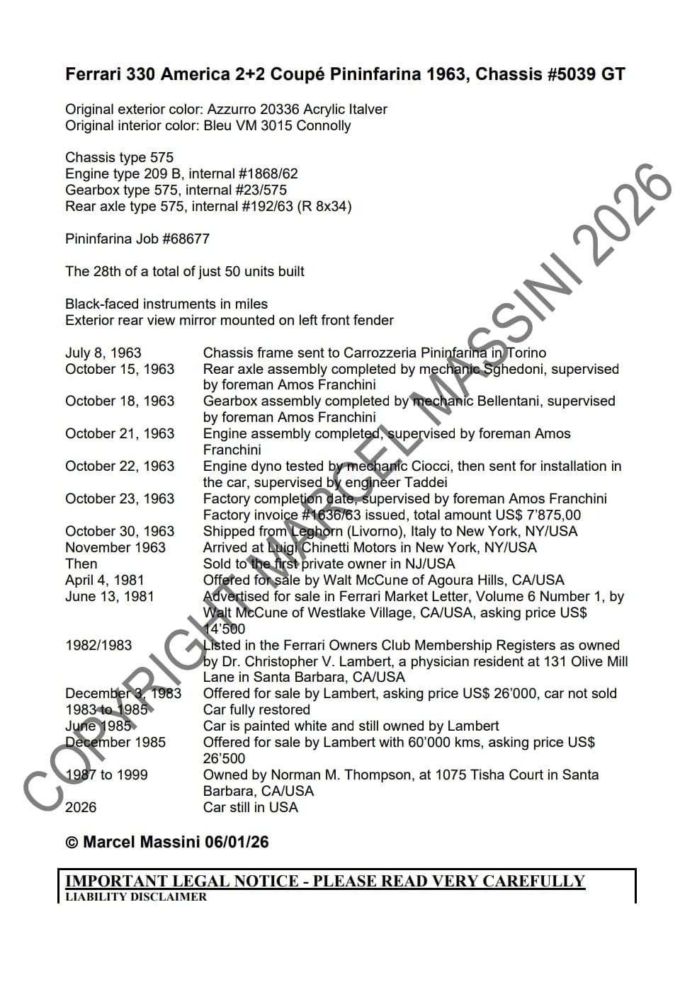 - Documented by Ferrari historian Marcel Massini