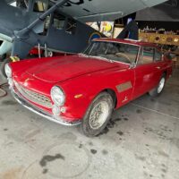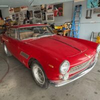 This 1963 Ferrari 330 America by Pininfarna is one of only 50 produced and was originally born in stunning light-blue metallic (Azzurro Acrylic Italver) with blue connolly leather. A matching numbers example documented by Ferrari historian Marcel Massini. The 28th of a total of just 50 units built. Chassis 5039 had a factory completion date of October 23rd, 1963 and was shipped from Livorno, Italy to New York, NY on October 30th, 1963. By November it had arrived at Luigi Chinetti Motors in New York. Today, chassis 5039 wears red paint with a tan interior. A California car that’s been tucked away in garage storage for the last 20 years in hibernation and is not currently running. The ideal candidate for straightforward restoration.