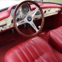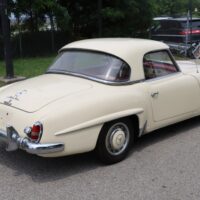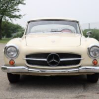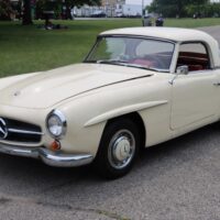 This 1963 Mercedes-Benz 190SL is a highly attractive example wearing a nicely mellowed older restoration. Ivory with supple red leather seats and two tops. Just out of storage and requiring mechanical recommissioning prior to use. Offered with books, jack, and spare as well as both soft-top and factory hard-top. Clean undercarriage and trunk floor. Good panel fit and door gaps. With some minor cosmetics and servicing, this 190SL could be taken to the next level with minimal effort. A wonderful opportunity to own an increasingly collectible and desirable 190SL at a reasonable price.