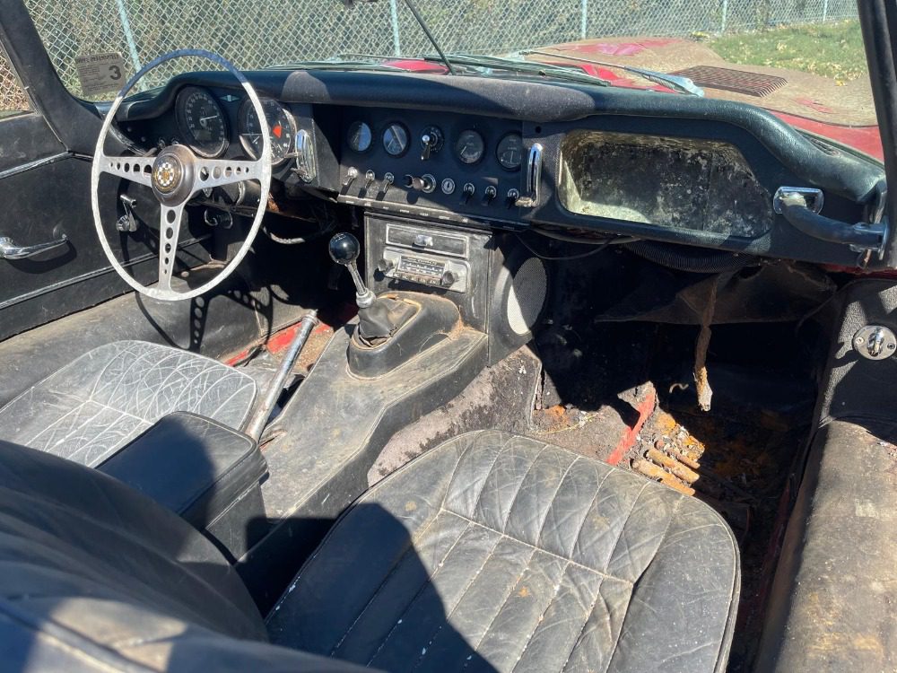 This 1967 Jaguar XKE Series I 4.2 Roadster is an original matching numbers example requiring straightforward restoration. Red with black interior. The chassis tag, body tag, and engine numbers all match, however the chassis number stamped into the front chassis rail is non-matching. Not currently running as it has been off the road for the last 35 years. This desirable and collectible Series I Covered-Headlight Roadster represents an exciting opportunity for any collector or enthusiast of the marque.
