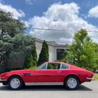 The production DBS V8 chassis number sequence commenced with ‘10001’, making this the 356th example of this landmark model built. According to the copies of factory records on file, this V8 was ordered new through Aston Martin Lagonda, Inc for export. Finished in the exceedingly Tudor Green over Tan leather, 10356 was handsomely optioned with air conditioning, automatic transmission, dual head rests, aerial and speakers, Waso steering lock, and Fiam horns. Completed on December 17, 1971 and shipped six days later on December 23, 1971 the first owner and any early history on the car is not recorded. At some point, likely in the last two decades, the car was repainted red but the interior appears to be original. Noted as having been in the U.S. in the early 1990s according to records from the Aston Martin Owners Club, it was presented in 1989-91 by a J. Stinsmen of Bucks County, Pennsylvania. The previous owner acquired the car from New Jersey in March of 2008 and has maintained the car on static display since. Runs and drives but will require servicing prior to active road use.