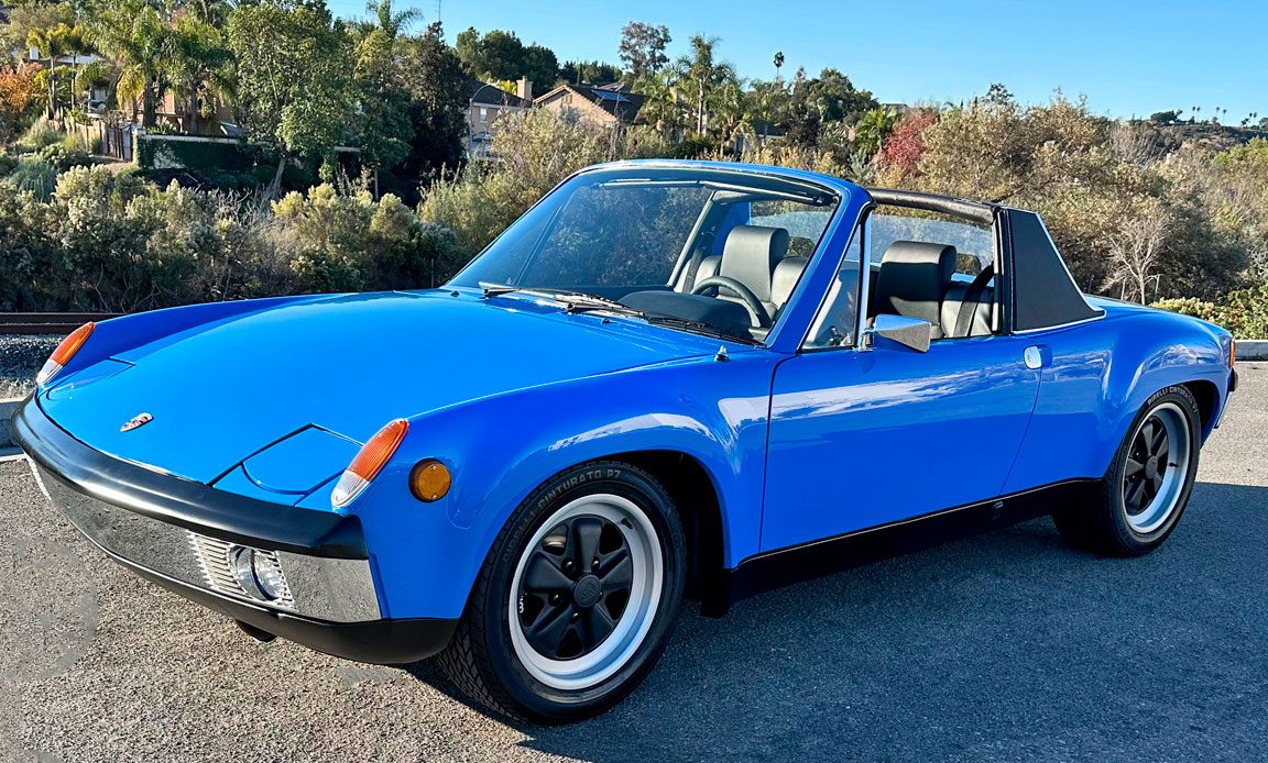 Performance-built Porsche 914-6 GT Tribute in Shark Blue features a 2.2L 911 six-cylinder engine, 5-speed 901 sideshift transmission, welded GT flares, Weber carbs, upgraded brakes, and Fuchs wheels. This high-performance classic blends vintage Porsche character with modern upgrades, delivering a thrilling experience on the road or track.