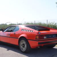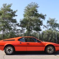 Among the rarest models BMW has ever built, and the first to be created entirely under the purview of its elite M division, the M1 is a hand-built homologation special developed in the late 1970s as the German automaker sought to compete at higher levels of motorsports. Intent on using a mid-engine layout, BMW initially contracted Lamborghini to develop the M1 chassis, and its tubular steel space frame is said to have been devised with input from noted Italian engineer Giampaolo Dallara. The final product was impressive, featuring a rigid spaceframe and sophisticated, double-wishbone suspension with adjustable coil springs and Bilstein gas-filled dampers. Angular fiberglass bodywork by noted designer Giorgetto Giugiaro gave the M1 visual appeal commensurate with its performance potential. BMW?s newly developed M88 3,453-cubic-centimeter inline six-cylinder engine was mounted ahead of the rear axle and featured advancements such as six individual throttle bodies and mechanical fuel injection. In street spec the engine produced 277 horsepower at 6,500 rpm, 243 pounds-feet of torque at 5,500 rpm, and an adrenaline-pumping shriek at full throttle.