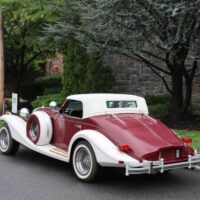 This 1981 Excalibur Series IV Roadster is a rare and desirable 2-seat model with rumble seat and one of just 159 Series IV Roadsters produced. Burgundy over tan with burgundy leather interior that’s in very nice original condition. 305 GM V8 with 3-speed automatic transmission. It runs and drives great, showing 28k miles on the odometer. Very clean and solid undercarriage and frame. A very straight, honest, and original example that’s ready for paintwork as it’s faded at this point. The chrome also shows some pitting in a few areas. The Series IV automobiles debuted in 1980 and were the first Excaliburs to incorporate glass side windows and a power convertible top for the Phaeton and Roadster models. An impressive automobile with a beautifully lined body with electronically foldable rumble seat, power steering, and power windows. The Series IV was also the first to receive a full design face lift. The Series IV?s appearance was attributed to the 500K/540K supercharged Mercedes-Benz of the mid to late 1930?s. This particular Series IV Roadster represents an excellent opportunity for any Excalibur collector or enthusiasts.