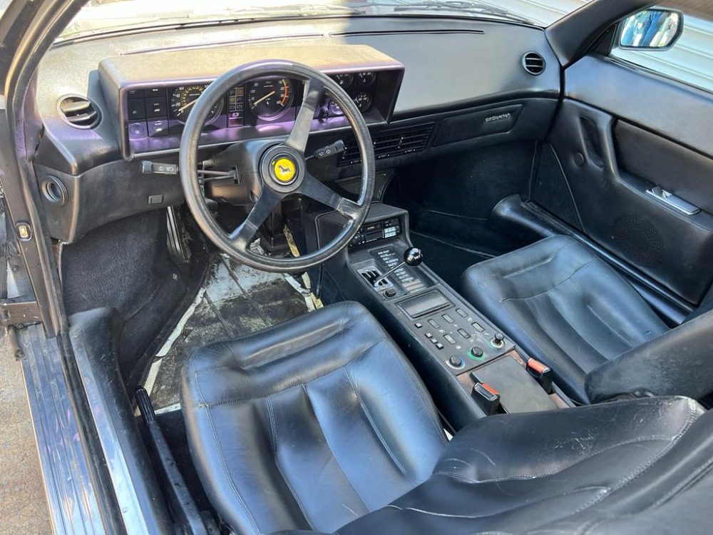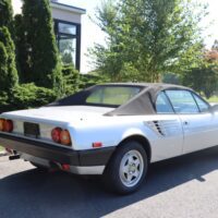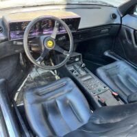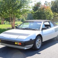 This 1985 Ferrari Mondial Quattrovalvole 2+2 Cabriolet with coachwork by Pininfarina is an excellent original example that would benefit from minor cosmetics and servicing. Silver with black leather interior and 65k miles. It runs and drives but should not be considered truly roadworthy without mechanical servicing. The paint and interior are also showing their age at this point with flaws in several areas. The soft-top is in good condition overall. Offered with a clean Carfax report.