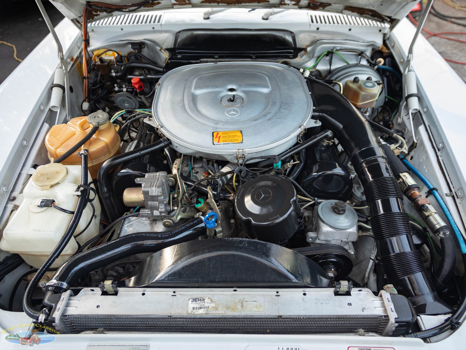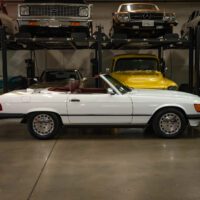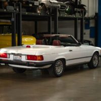 Highly desirable and striking original factory ‘Arctic White’ (color code 147) color paint with a very handsome ‘Medium Red Leather’ (trim code 277) leather interior, its original and hardly used original ‘Black’ German folding canvas soft top, factory chrome alloy wheels, matching factory hard top, rare 2+2 rear seats and only 72K original and actual miles!