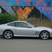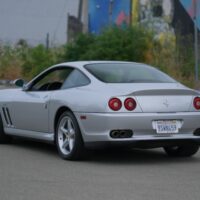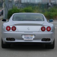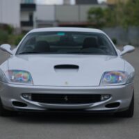 This 2000 Ferrari 550 Maranello is a beautiful California car with 50k miles. Argento with black leather interior. Offered with factory books and tools. Nice body and paint. A very clean and attractive example that runs and drives excellent. A good straight car that is due for servicing at this time. Some sticky buttons and a small crack in the lower front spoiler. The Carfax shows very minor damage reported in 2008. A highly sought-after and increasingly collectible gated 6-Speed front engined V12 Ferrari.