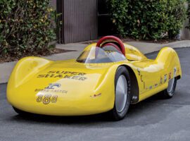 This legendary Harley-engined, streamliner top-speed machine was the brainchild of veteran hot-rodder, Bill Burke of San Gabriel, CA. It competed in the 1959 Bonneville Nationals, where Burke eclipsed a speed of 151.7 mph, a very respectable time for the era and considering the engine size. The car competed in the […]