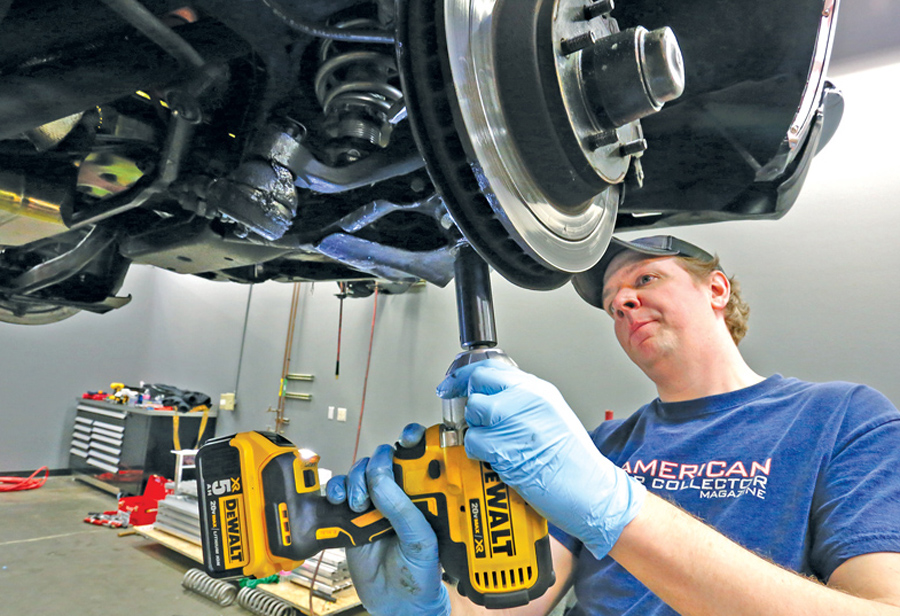 Call QA1 (1.800.721.7761) to discuss your car and its spring-rate needs. Once that’s nailed down and your parts are in hand, measure your car’s ride height from the ground to the center of the wheelwell. In this case, our full-size ’66 Chevy is at 28 inches. Then jack up and support the car so its suspension hangs at full droop and remove the front wheel.