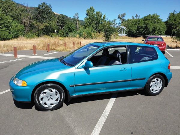 # 33178. S/N 2HGEH3387PH525517. 111,000 miles shown. “1.6-L VTEC inline 4, 5-speed manual transaxle, Aztec Green Pearl, patterned gray cloth interior, factory cassette player, power sunroof.” Condition: 1-. SOLD AT $11,025. Bring a Trailer, 6/25/2020.