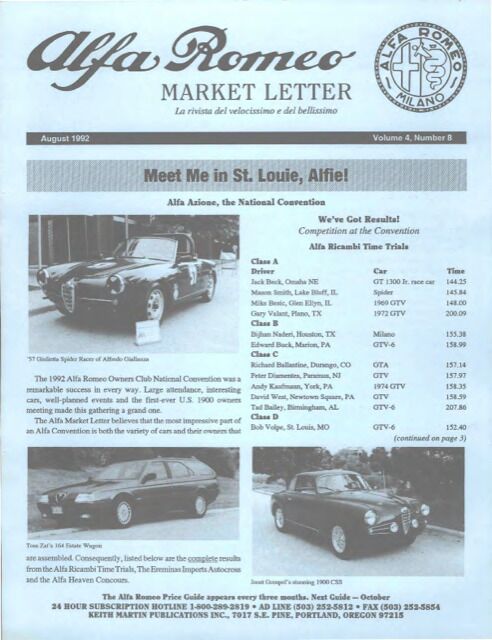 Alfa Romeo Market Letter August 1992 (Digital) quantity