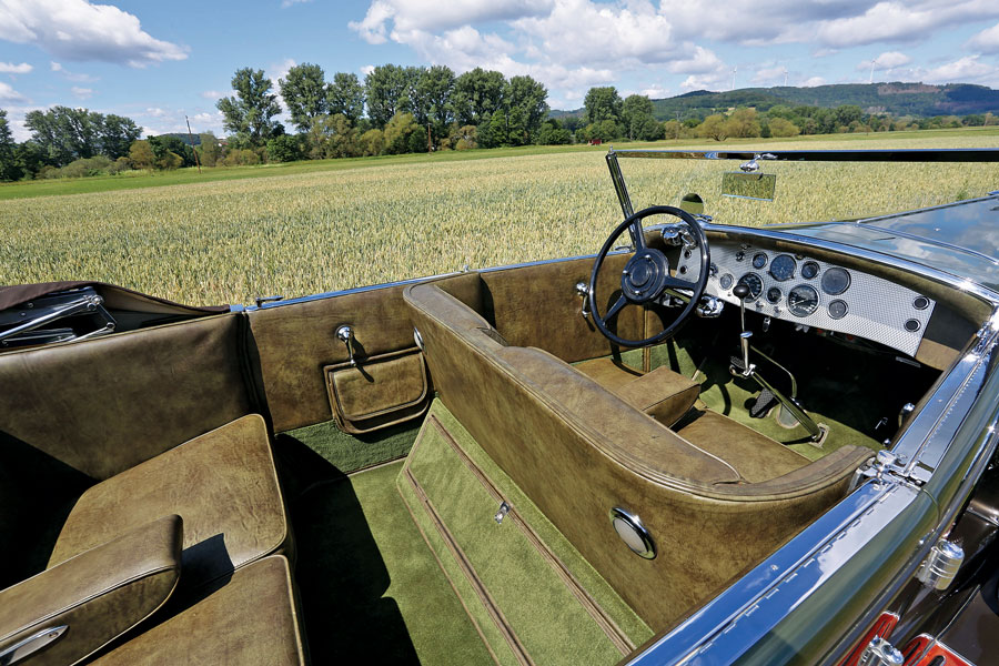 The Model J was powered by the race-developed straight-8 that produced 265 horsepower, which was twice the output of any other American offering. It was certainly needed, as the massive cars, with their 142.5- or 153.5-inch wheelbases, weighed in at close to 5,000 pounds. A centrifugal supercharger increased power to 320, but this was an awkward arrangement, with the blower placed on a stalk that rises out of the right side of the crankcase, where at 4,000 rpm it delivered the air/fuel mixture at about 5 psi to the intake manifold on the opposite side. A refined rams-horn manifold for the supercharger was later developed that produced as much as 400 horsepower.